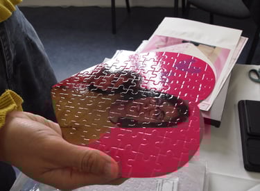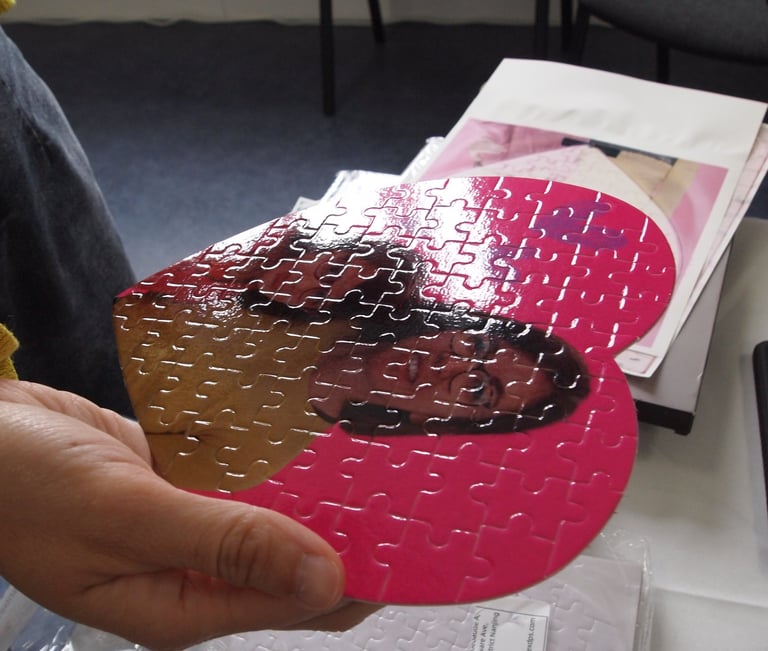 montrent les impressions par sublimation sur des puzzles ici en forme de cœur. Petits et grands ont pu profiter des explications pour comprendre cette méthode d'impression qui peut sembler "magique" quand le résultat est révélé.