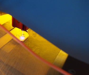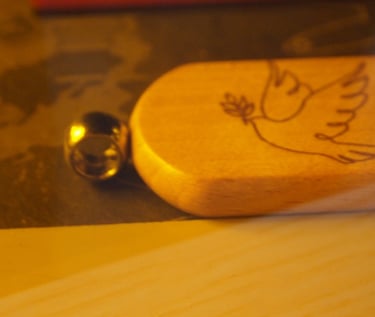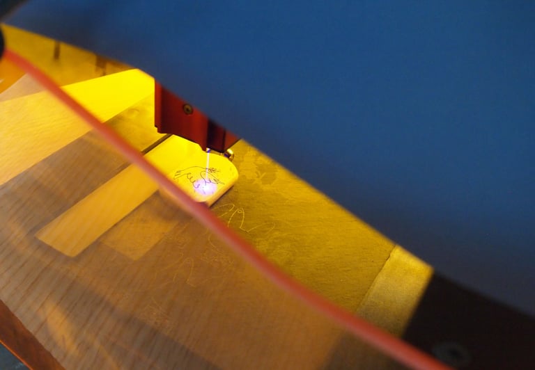 A droite, le graveur laser est en train de donner naissance à un porte clé en bois.