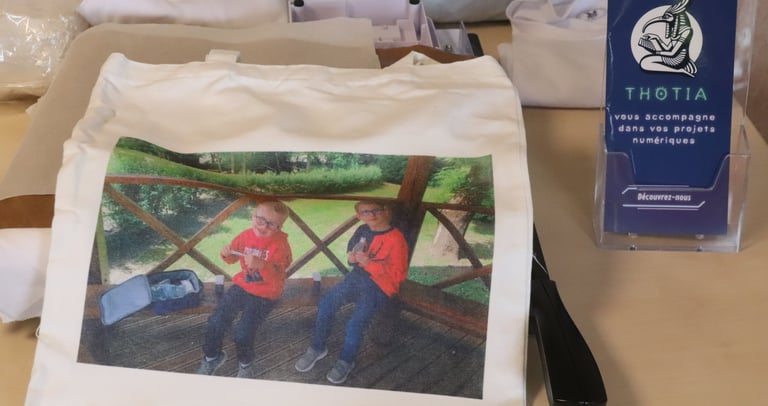 Les nouveaux adhérents ont pu personnaliser un tee-shirt ou un tote-bag grâce à la méthode de sublimation thermique. Ensuite, ils ont pu s'initier à la génération d'images avec l'Intelligence Artificielle.
