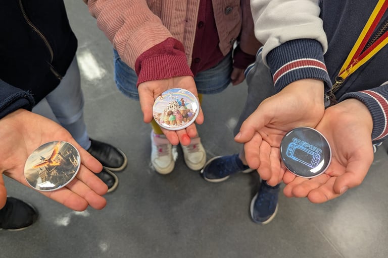 Nos charmantes guides ont accompagné le public dans la création de leur visuel pour créer des objets pour la fête des pères ou la fête des mères (ou pour tout autre envie). Avec leur aide, ils ont créé des images ou téléchargé des photos qui ont été transmises vers l'espace d'impression.