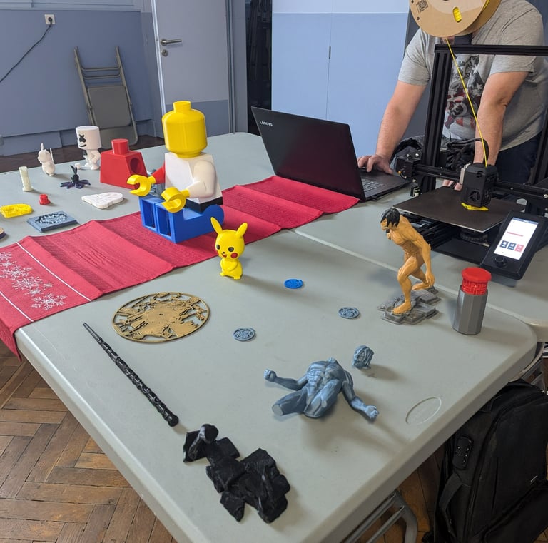 Une démonstration d'impression 3D était également visible lors de ce fablab afin de montrer au public des exemples de production et leur expliquer ce qu'il faut savoir pour débuter dans ce domaine.