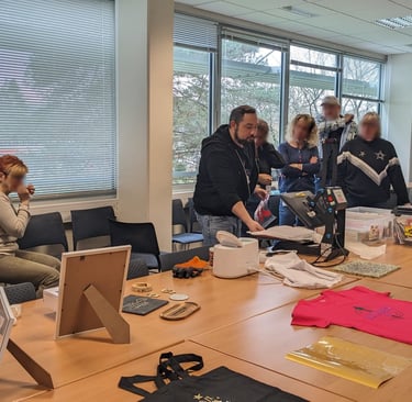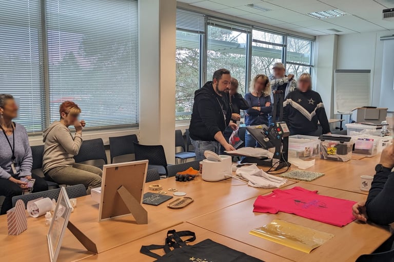 Nous offrons nos services aux entreprises qui souhaitent renforcer la cohésion de leurs équipes. À travers des ateliers de création de type DIY, nous utilisons des machines modernes capables de produire des objets personnalisés, semblables à ceux disponibles sur les sites marchands ou dans les supermarchés. Ces ateliers créatifs, qu'il s'agisse de sessions de démonstration ou de participation active, permettent aux participants de découvrir l'univers de la création d'une manière ludique et accessible.