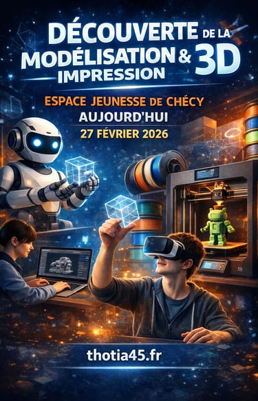 Thotia a proposé un atelier sur l'impression 3d aux ados de l'espace jeunesse de la Ville de Chécy et d'Orléans. Ils ont eu la possibilité de modéliser un objet en 3d et de le voir "prendre vie" dans l'imprimante. Merci à tous les participants et aux animateurs.